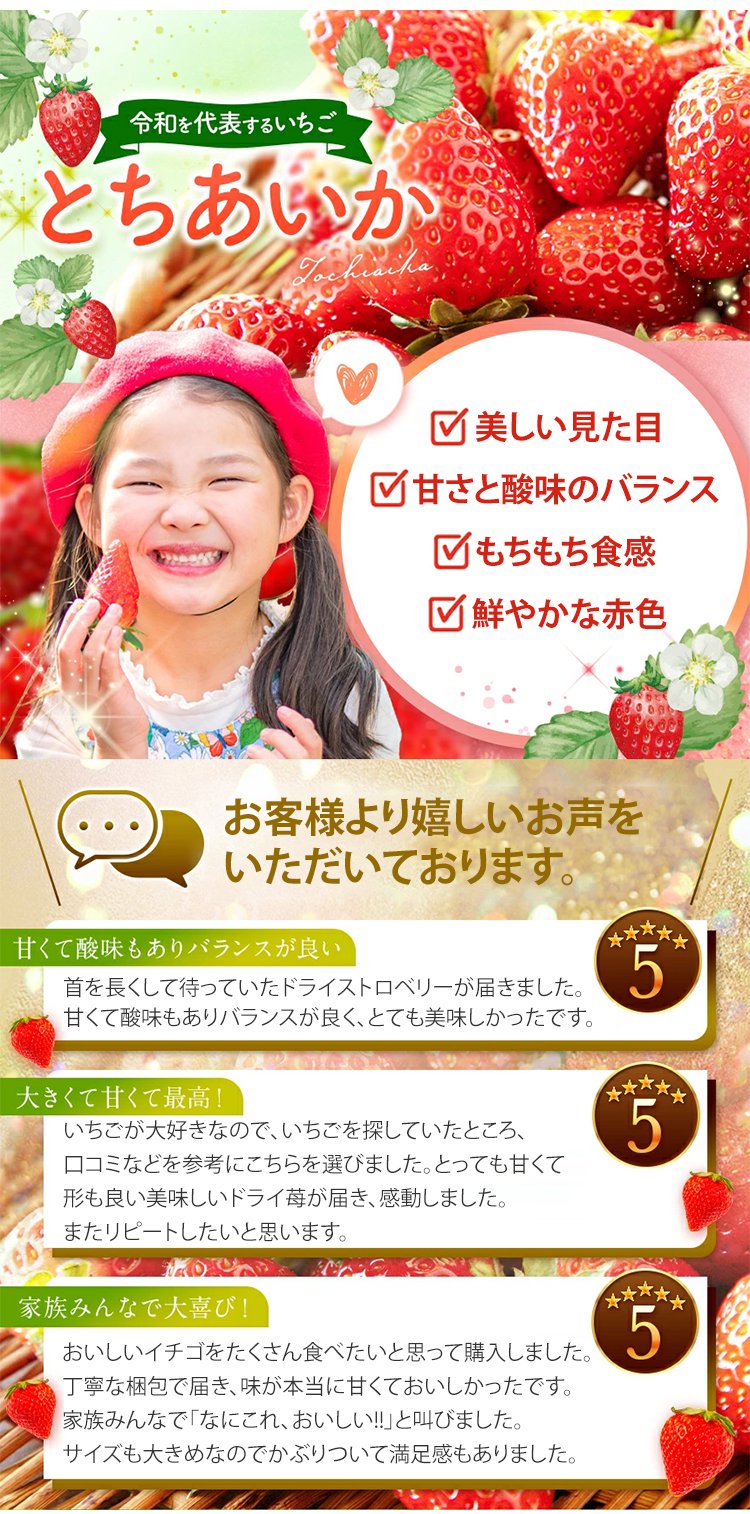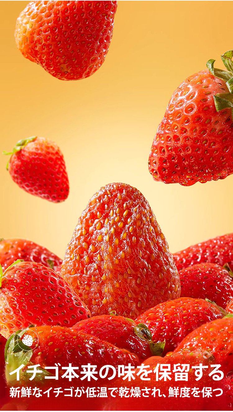 連続46年日本一に輝く栃木県産の「とちおとめ」が、フリーズドライ技術を駆使して作られた『超次元スイーツ』。あなたの味覚と細胞を一新し、脳と肌に活力をもたらします!